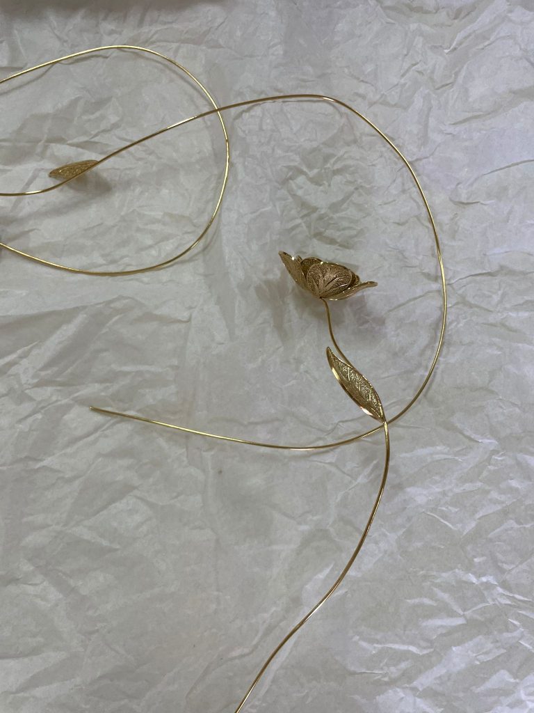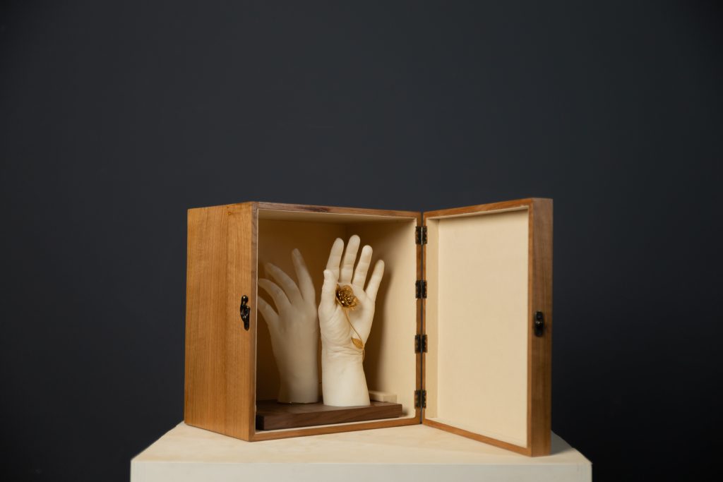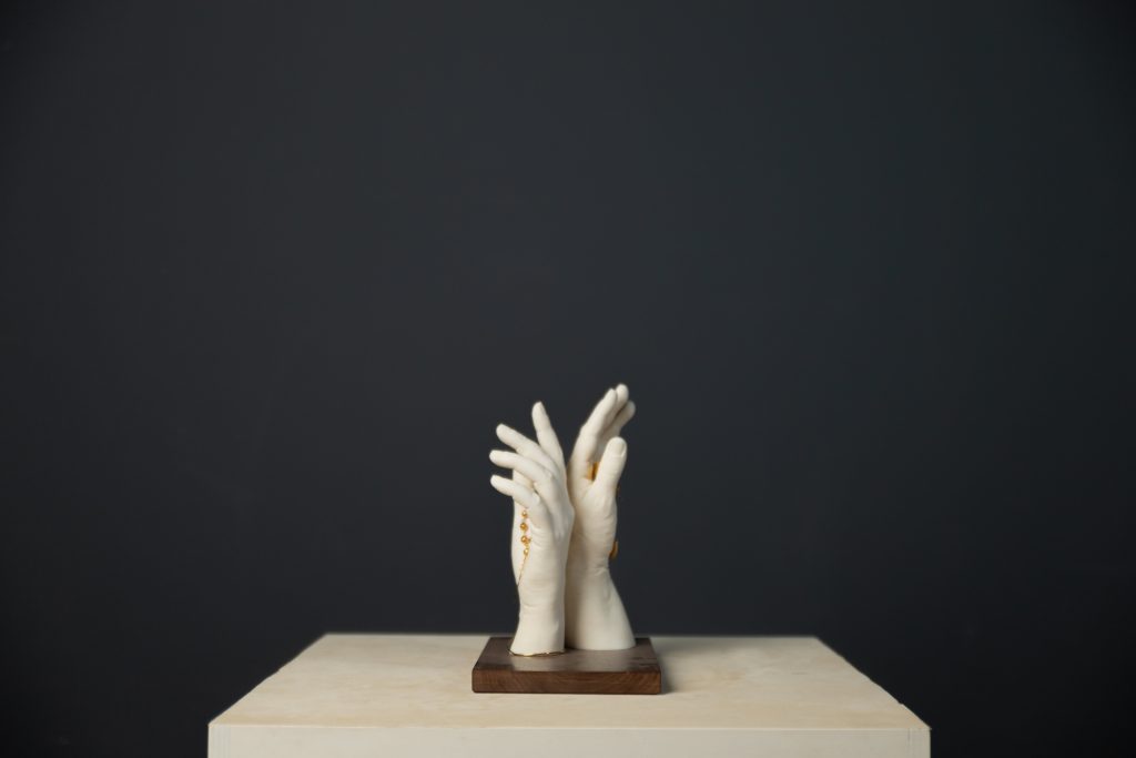 A filigrana presente na escultura Enlace é trabalhada com precisão e reverência. De facto, representa não apenas o valor artesanal da região norte. Além disso, simboliza a atenção ao pormenor, à memória e à transcendência.