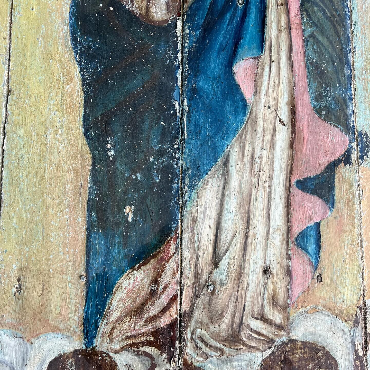 A obra pertence à Igreja de Nossa Senhora da Natividade, em Medas, um templo quinhentista que ainda conserva a estrutura da nave e da capela‑mor. Com o passar dos séculos, o retábulo sofreu perdas de camada pictórica, acumulação de sujidade e fragilidade estrutural. Como resultado, a imagem da Virgem, originalmente luminosa e delicada, tornou‑se difícil de reconhecer.