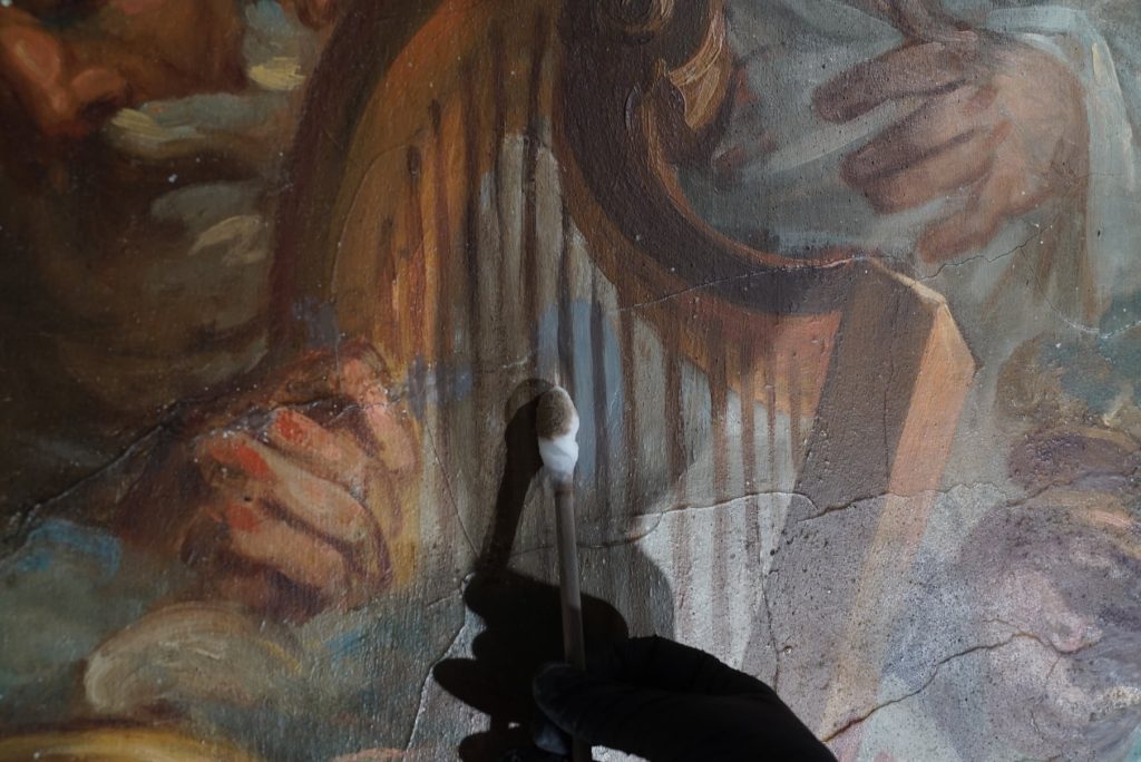 Por conseguinte, os especialistas da Dalmática aplicam técnicas de fixação e consolidação especificamente desenvolvidas para pinturas do século XIX. Efetivamente, cada intervenção respeita a integridade artística da obra de Joaquim Rafael.